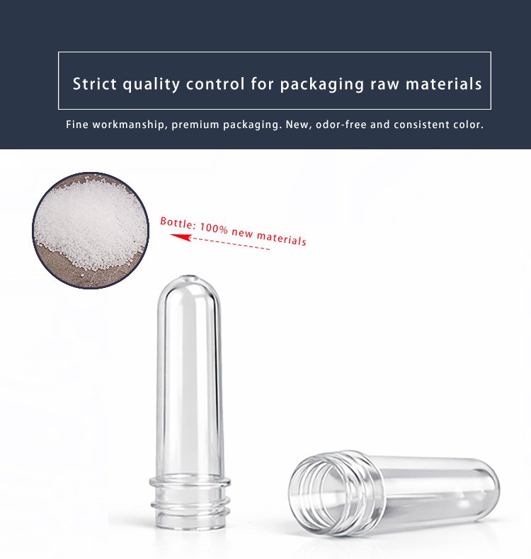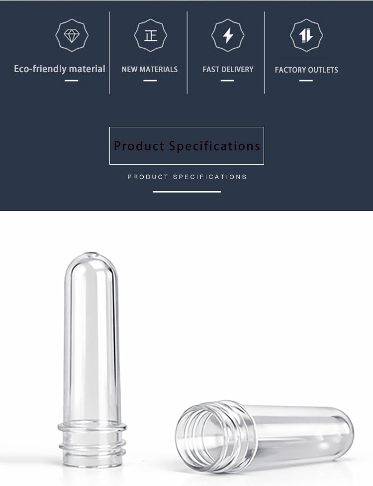 Our PET preforms are made of high-quality food-grade PET material, with high transparency, uniform wall thickness and stable performance. They feature standard thread design, smooth inner and outer walls, no impurities, and excellent blow molding performance. Suitable for beverage bottles, mineral water bottles, oil bottles, cosmetic bottles and other packaging containers. We support customized neck size, weight and height to meet different production needs.