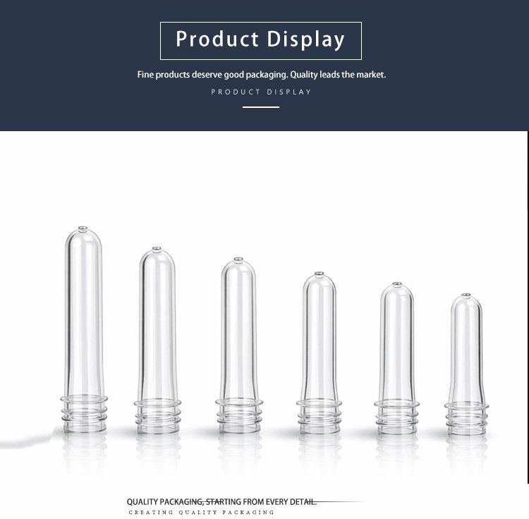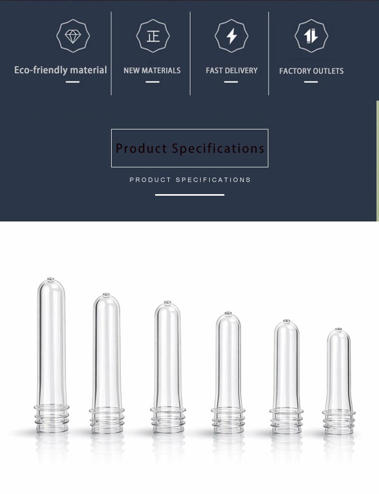 Our PET preforms are made of high-quality food-grade PET material, with high transparency, uniform wall thickness and stable performance. They feature standard thread design, smooth inner and outer walls, no impurities, and excellent blow molding performance. Suitable for beverage bottles, mineral water bottles, oil bottles, cosmetic bottles and other packaging containers. We support customized neck size, weight and height to meet different production needs.